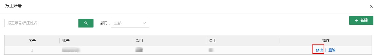 應(yīng)用中心-移動(dòng)報(bào)工-報(bào)工賬號(hào),進(jìn)入報(bào)工賬號(hào)列表頁(yè),點(diǎn)擊修改,可以進(jìn)入報(bào)工賬號(hào)修改頁(yè)面,修改報(bào)工賬號(hào)信息或重置密碼。